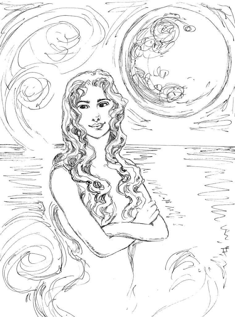 Selia is struggling like most watery women stranded on land, with her identity. Working at the Louvre gives her access to a vast library of mythological databases. She’s asking herself if she should identify with a mermaid, siren, or sea nymph?